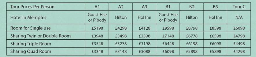 *it might be possible for Tour A passengers to depart from Manchester or Glasgow at extra cost.