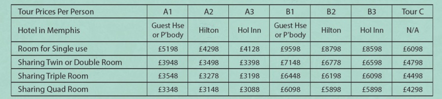 Memphis and Tupelo as per Tour A. Flights will be from the UK through to Kaua‘i, onward